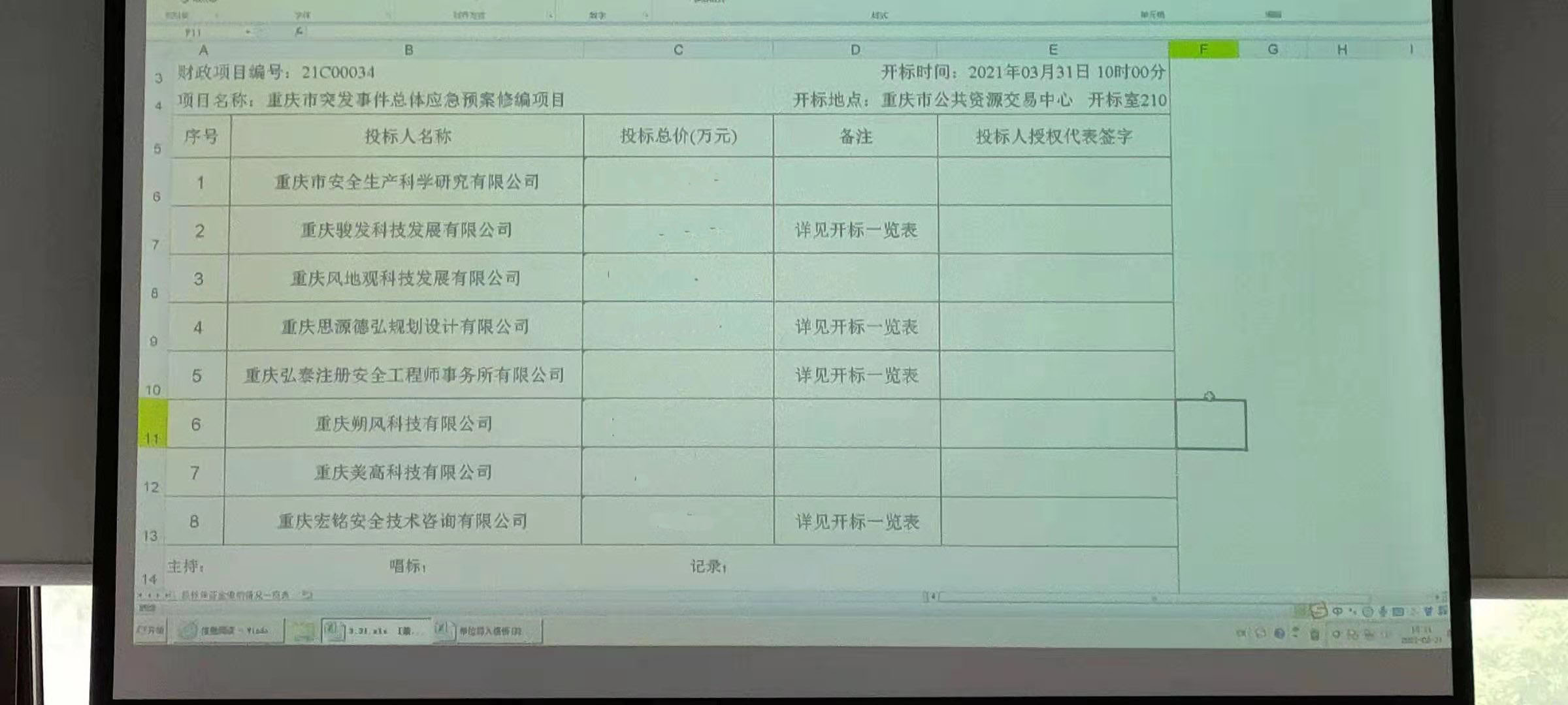 2021年3月31日 我公司参加重庆市总体应急预案的修编工作的投标,未能中选,向中标的重庆安科院表示祝贺!以后我们会积极参与重庆市的应急管理工作,为我市的应急工作尽我们的绵薄之力!